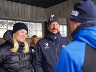 Kongeparet og Kronprinsparet gratulerer Therese Johaug med VM-revansje og siger på 20-kilometeren i Kollen. Foto: Liv Anette Luane, Det kongelege hoffet