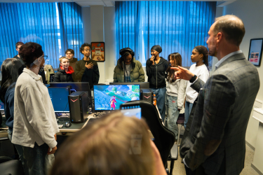 Kronprinsregenten møtte unge som bruker husets ulike tilbud under omvisningen. Foto: Ola Vatn, Det kongelige hoff