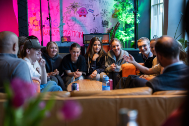 Kronprinsregenten i samtale med ungdom på ungdomskulturhuset G60. Ungdommene fortalte blant annet om hvorfor dette er en viktig møteplass for inkludering. Foto: Ola Vatn, Det kongelige hoff