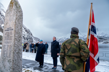 Kransenedleggelse til minne om Operasjon Muskedunder, en av de første norske sabotasjeaksjonene under 2. verdenskrig. Foto: Simen Sund, Det kongelige hoff