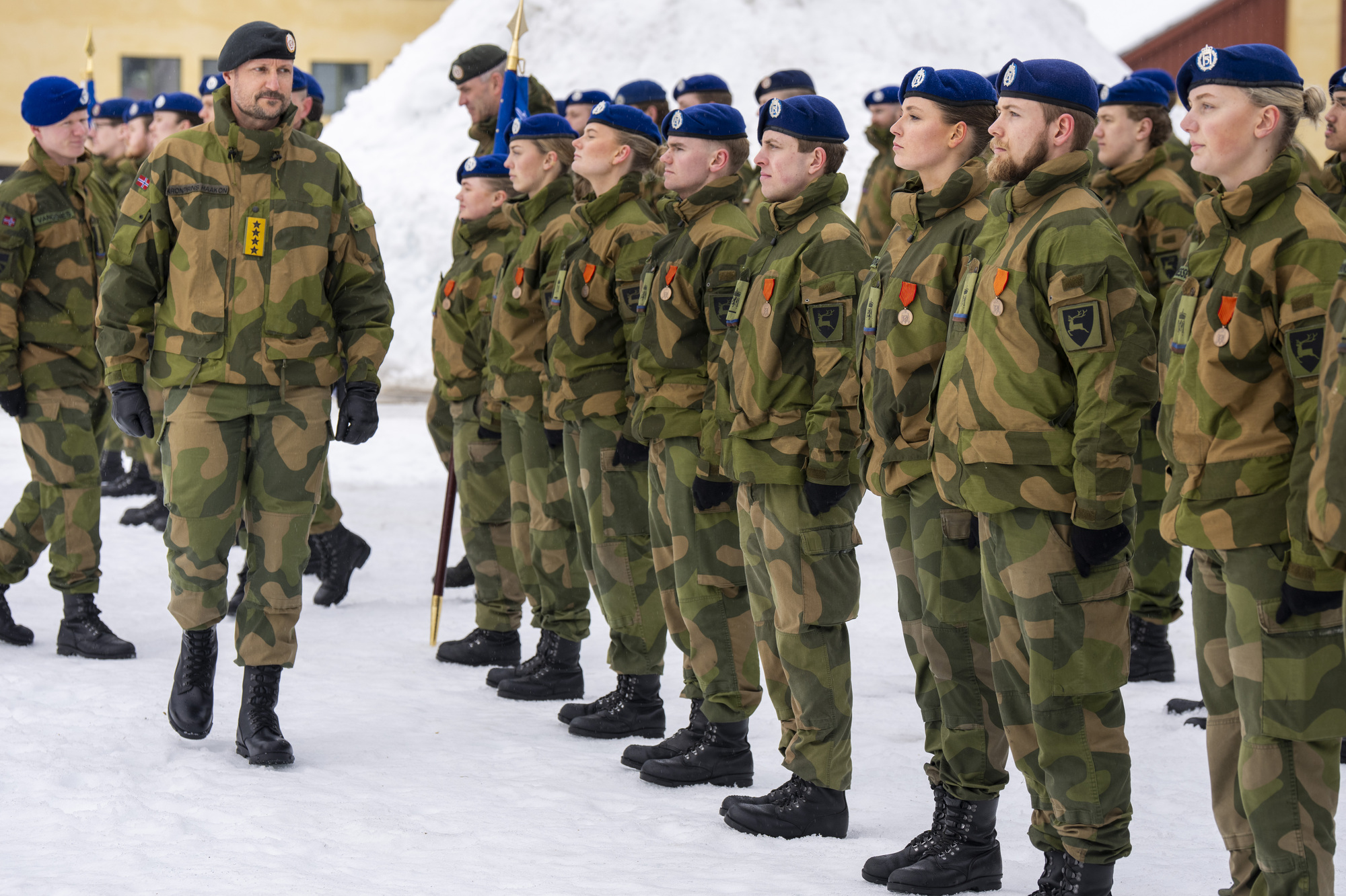 – Jeg vil takke dere for den tjenesten dere gjør, og for at dere bidrar til å trygge Norge, sa Hans Kongelige Høyhet Kronprinsregenten til soldatene da han inspiserte Ingeniørbataljonen ved Skjold leir i Troms.