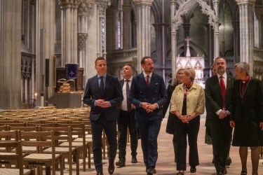 I Trondheim sentrum gikk turen til Nidarosdomen. Biskop Herborg Finnset ga følget en omvisning i Nidarosdomen og viste blant annet frem Høyalteret.