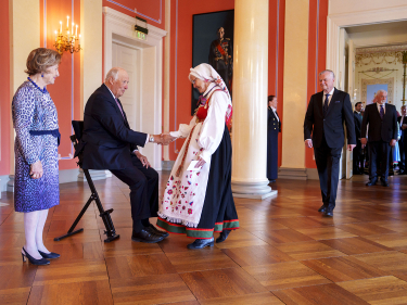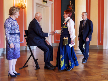 I dag var 35 mottakere av Kongens Fortjenstmedalje invitert med hver sin ledsager til Det kongelige slott. Deres Majesteter Kongen og Dronningen ønsket dem alle velkommen.