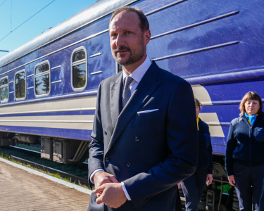 Hans Kongelige Høyhet Kronprins Haakon besøker Ukraina og hovedstaden Kyiv, for å vise den sterke norske støtten til det ukrainske folk og landets ledere. Kronprinsen møtte president Zelenskyj sammen med Norges energiminister Terje Aasland, og la ned krans på minnesmerket for falne soldater i Mosjtsjun.