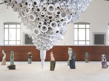 I utstillingen i Ridehuset har fire kunstnere gjort klassiske former om til monumentale installasjoner og skulpturer.