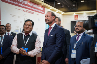 Rundt 1000 utstillere fra over 50 land er på plass på messeområdet i Nova spektrum under messen Under omvisningen besøkte Kronprinsen Indias paviljong, Det Norske Veritas og Kjeller Innovasjon, og fikk høre mer om hvordan de jobber med shipping, bærekraftige løsninger og innovasjon.