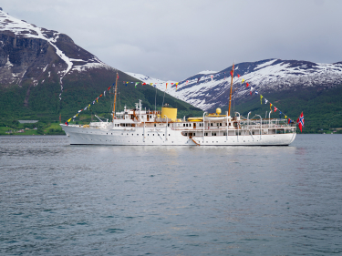Kongeskipet Norge i Balsfjord under fylkesturen i Troms. Foto: Cornelius Poppe / NTB