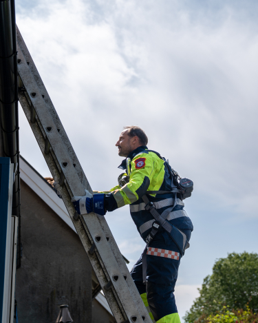 Hans Kongelige Høyhet Kronprins Haakon deltok på en arbeidsdag med forebyggende brannvern i anledning Feiermesternes Landsforenings 80-årsjubileum.