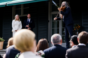 Kronprinsesse Mette-Marit introduserte musikaren Gjermund Larsen, som framførte fleire musikalske innslag med hardingfela si.