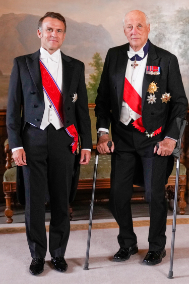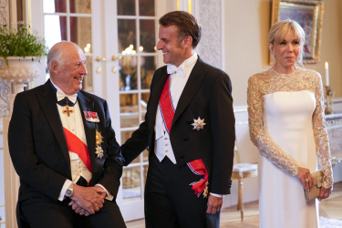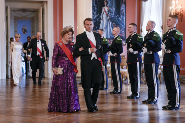 Deres Majester Kongen og Dronningen holdt gallamiddag på Slottet i anledning Frankrikes president Hans Eksellense Emmanuel Macron og hans kone fru Brigitte Macron offisielle besøk til Norge. Det er 41 år siden sist gang en fransk president var på offisielt besøk til Norge.