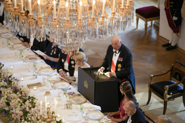 – Norge verdsetter Frankrikes tydelige lederskap for å bygge europeisk samhold og solidaritet. Frihet og demokrati er forutsetninger for menneskelig utfoldelse og fellesskap. Det fransk-norske vennskapet har sprunget ut av dette verdifelleskapet, og det har blitt stadig tettere gjennom årenes løp – innen næringsliv, utdanning og kultur, sa Kongen i sin tale.