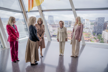 Dronningen, Kronprinsessen og Brigitte Macron besøkte også Munchmuseet i Bjørvika mandag formiddag.
