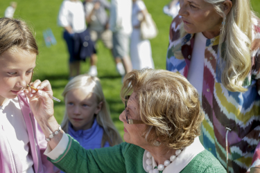Både Dronningen og Kronprinsessen fikk prøve seg som ansiktsmalere. Foto: Silje Katrine Robinson / NTB