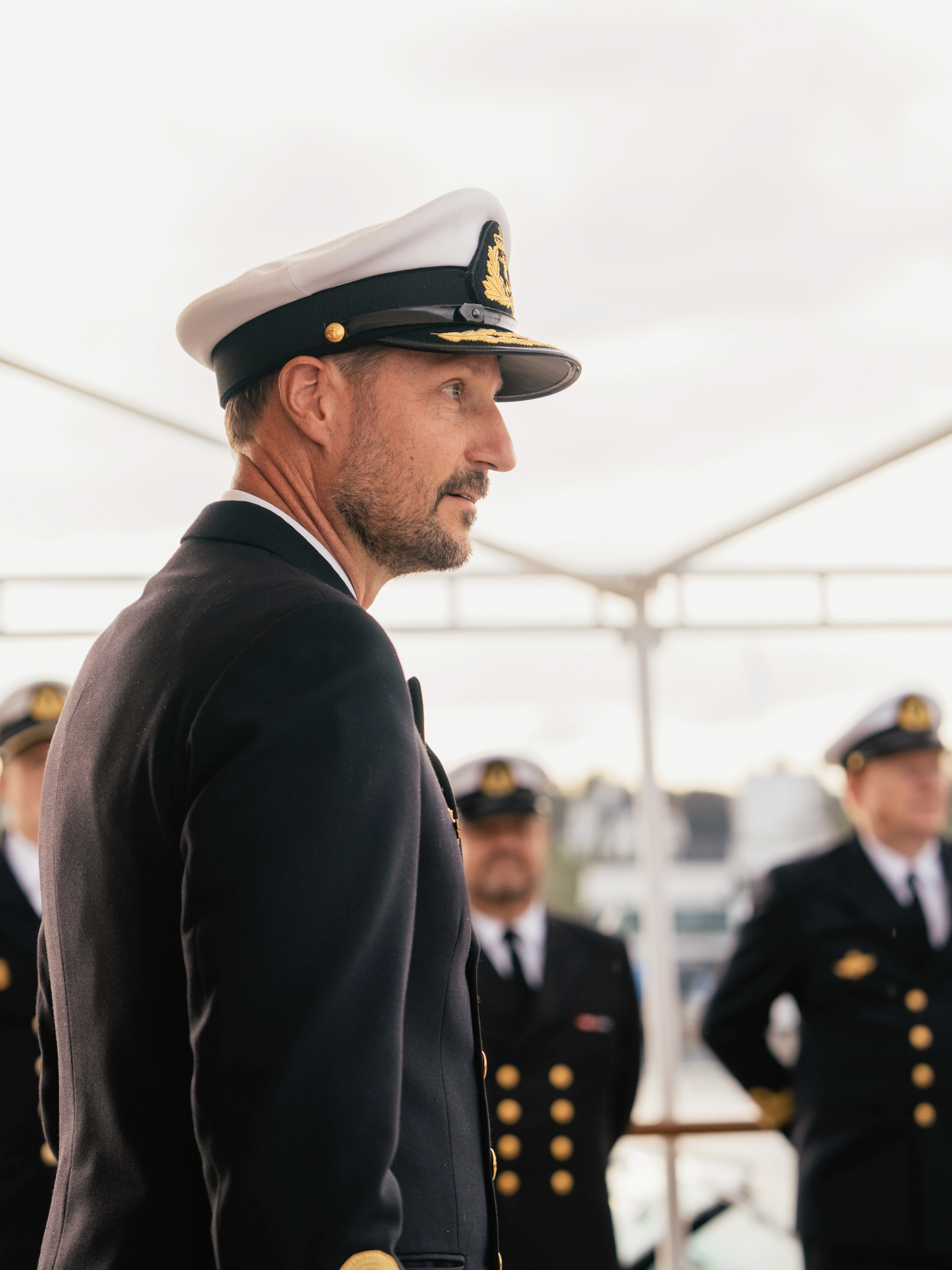 Tradisjonen tru var det oppstilling og inspeksjon av mannskapet på akterdekket. Kronprins Haakon nytta høvet til å takke alle for innsatsen på vegner av Kongeparet og Kronprinsparet. Deretter følgde inspeksjon av fartøyet.