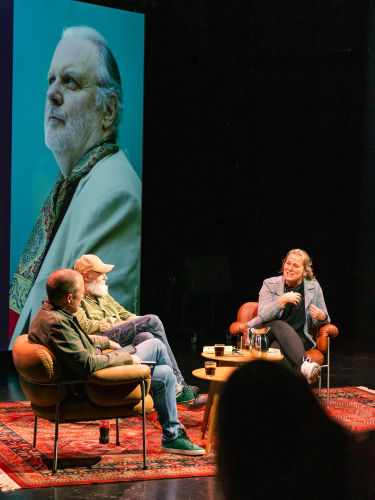 Publikum i Det Norske Teatret i Oslo fekk høyre forfattarane Erlend Loe og Olaug Nilssen diskutere “Naustet” som var eit gjennombrot for Jon Fosse her i landet, skriven i ein repeterande, suggererande stil. Foto: Ole Herman Andersen / Det Norske Teatret
