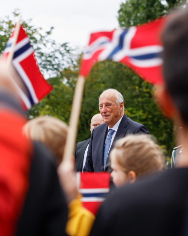 Kong Harald ønskes velkommen til festgudstjenesten på Nesodden. Foto: Jonas Been Henriksen / NTB