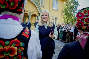 Kronprinsessen i møte med lokale iført Hallingbunaden. Foto: Ole Berg-Rusten / NTB