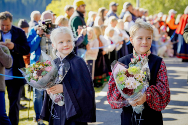 Blomsterbarn ved Hemsedal skule. Foto: Ole Berg-Rusten / NTB