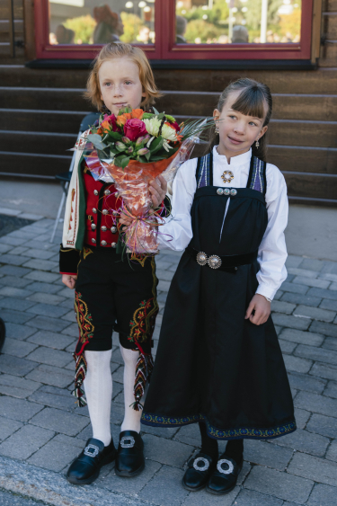 I gågata på Geilo i Hol kommune ble Kronprinsen møtt med blant annet engasjerende sang, dans og musikk fra rundt 40 barn som er del av musikalgruppen Skarvebarna.