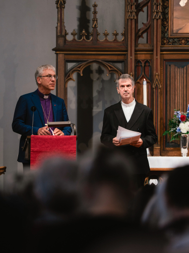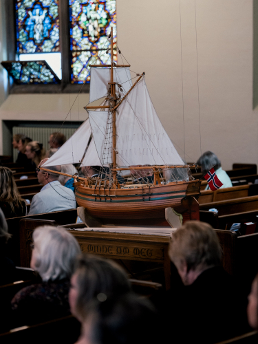 Under sitt besøk til Minneapolis var kronprinsen og de to ministrene til stede under signingen av et nytt kirkeskip til kirken. Skipet er en modell av Restauration – skipet som dro fra Stavanger 4. juli 1825 med 52 nordmenn om bord, med havnen i New York som endelig reisemål.