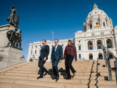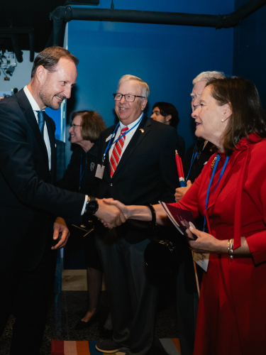 I Minnesota tok guvernør Tim Walz imot Kronprins Haakon, utenriksminister Espen Barth Eide og næringsminister Cecilie Myrseth på Minnesota State Capitol. Tema for samtalene var de sterke båndene mellom Minnesota og Norge, samt prioriteringer og satsinger innen både forsvar og næringsliv. Tim Walz har vært valgt til guvernør og dermed delstatens regjeringssjef siden 2019. Han var Kamala Harris’ visepresidentkandidat i presidentvalgkampen i 2024.