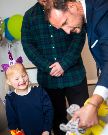 Under omvisningen på barneavdelingen møtte Kronprinsen barn som er pasienter på sykehuset, deres foreldre og søsken. Foto: Javad Parsa / NTB