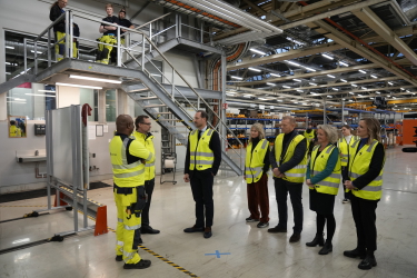 Hans Kongelige Høyhet Kronprins Haakon markerte jubileet ved å besøke de ansatte som holder hjulene i gang på vei og skinner. Først møtte han ansatte ved verkstedet på Ryen der t-banevogner vedlikeholdes, repareres og oppgraderes.