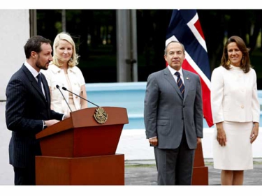 Almmolaš buresboahtinseremoniija lei Mexico presideantta ássanbáikkis, Los Pinos. Dáppe vuostáiválddii Presideanta Felipe Calderón ja su roavvá Margarita Zavala Ruvdnaprinssa Haakona ja Ruvdnaprinseassa Mette-Marit unna tempelis mii gullá residensii. Ruvdnaprinsabárra galgá deaivvadit Presideanttain Calderón ja su roavváin Zavala maŋŋil fas dán guossástallanmátkkis.