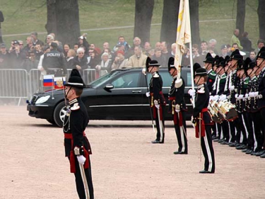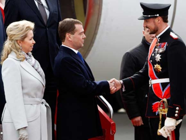 Majestehta Dronnet ja Ruvdnaprinsabárra leigga maid fárus buresboahtinseremoniijas, gos Gonagas ja Presideanta inspiseriiga Gardena ja dearvvaheigga almmolaš Norgga ovddasteddjiid. Presideanta Medvedev asttai maid dearvvahit norgga ja ruošša mánáid geat ledje boahtán Šloahttašilljui.