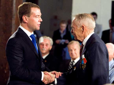 Dmitrij Medvedev gudnijahtii maid 14 norgga soahteveterána Ruošša ávvomedáljain mii lea muitun 65-jagi ávvudeapmái dan rájes vuite Stuora váhneneatnansoađi 1941-1945.