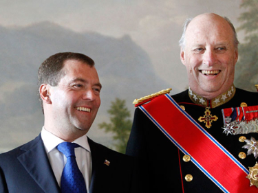 Ihttin galgá Preasideanta deaivvadit stáhtaministariin Jens Stoltenberg. Lea šihttojuvvon ahte soai galgaba vuolláičállit máŋga šiehtadusa gaskal Norgga ja Ruošša Akershus festningas, ovdal go presideantabárra vuolgá Ráđđehusa guossin almmolaš lunšii Akershusas.