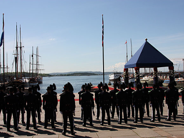 Dronnet Beatrix bođii Oslo Hámmanii Tromp fregáhtain. Ruvdnaprinsa Haakon vuostáiválddii fregáhta Kongesjaluppeniin, ja son láidii Dronnega Honnørbryggai, mii lea Oslo Ráđđeviessu lahka. Das vuostáiválde su Gonagas Harald, Dronnet Sonja ja Ruvdnaprinseassa Mette-Marit.