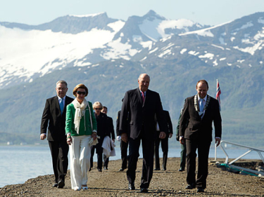 Maŋŋemus sártnistis dán mátkkis giitalii Gonagas Harald golmma miellagiddevaš beaivvi ovddas davvin, gos sii ledje beassan čuovvut earenoamáš bures plánejuvvon prográmma mii čađahuvvui hui bures. Gonagas deattuhii man dehálaččat fylkamátkkit leat sudnuide Dronnegiin: