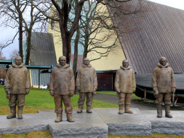 Lea dáiddár Håkon Fagerås gii dien viđa olbmás lea ráhkadan monumeantta. Sii leat ráhkaduvvon bronssas, goasii guokte mehter alu, ja ceggejuvvon granihta vuođu ala. Hábmemii leamaš inspirašuvdnan govat maid sii ieža govvejedje Lullipolas, ja dat lea roavvat hábmejuvvon čájehan dihtii makkár garra dilálašvuođaid sii fertejedje nagodit čađahit. Monumeanta govvida dan allaáiggalaš čalbmeravkaleami go sii čužžot doppe gahperkeahtes oivviid, ja gehččet lávu ja leavgga guvlui mii ceaggá polačuoggas.
