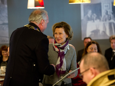 Etter ei innleiing ved ordførar Jan Geir Solheim fekk Kongen og Dronninga høyre om arbeidet frå både lensmannen, brannsjefen og representantar for Sivilforsvaret og Raudekrossen. Rådmann Alf Olsen orienterte om kva som vil skje i Lærdal i tida framover.