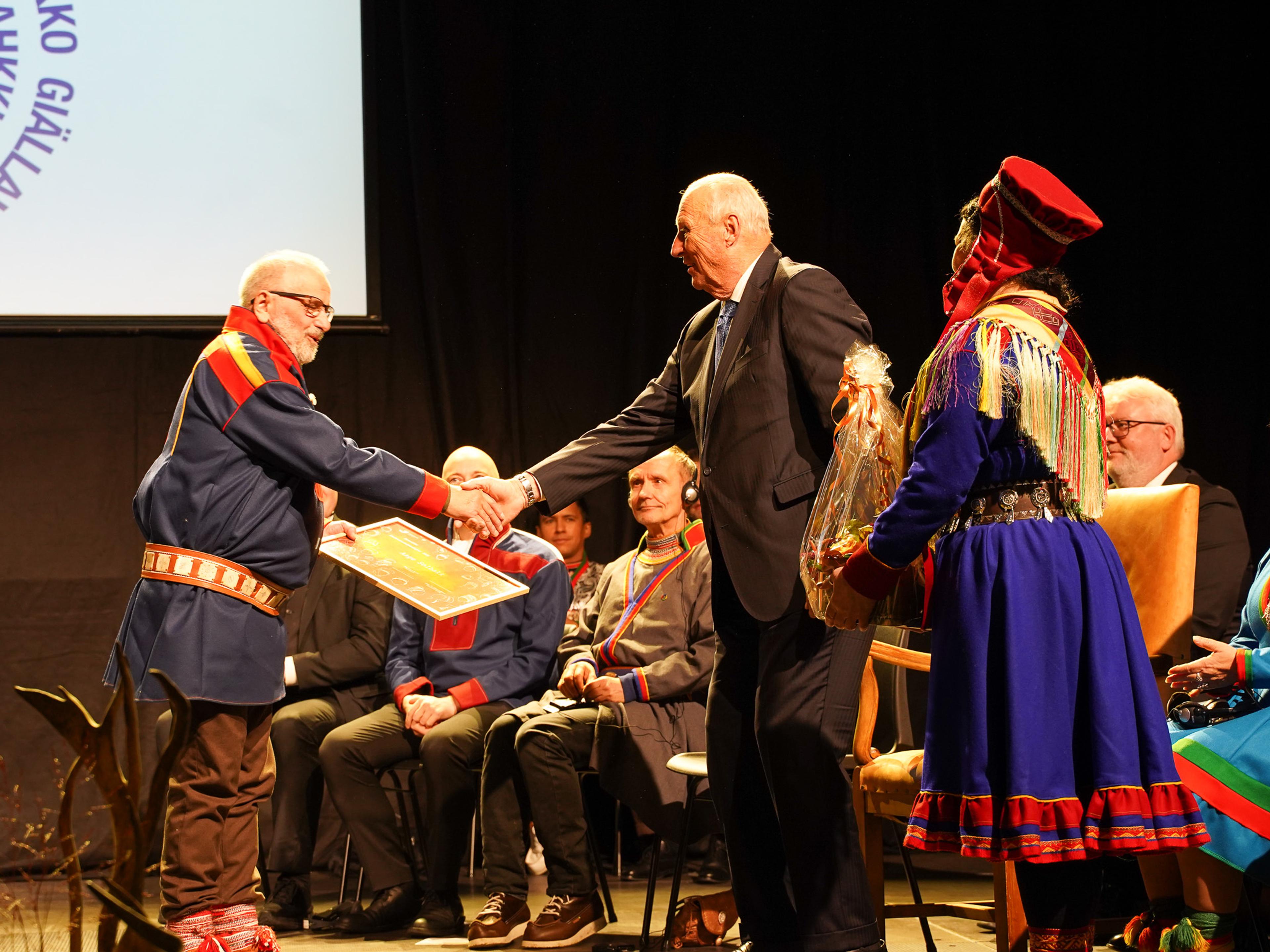 Gonagas geigii deatnulažžii Lemet-Jon Aage, Aage Solbakkii, diploma Sámedikkis dan ovddas go nu áŋgirit leat bargan sámi gielaid ovdánahttimiin olu jagiid.