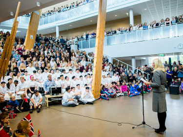 Kronprinsen og jeg setter stor pris på å få møte så mange av dere her i dag. Tusen takk for det spennende programmet dere har laget for oss. Dere har virkelig god grunn til å være stolt av å bo i Nannestad.