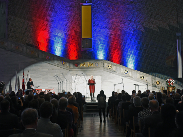 Det er dere som kan utgjøre en forskjell i vår tid og for det Norge vi vil ha i framtiden. Organisasjoner som Røde Kors – og støtteapparatet av frivillige – har et våkent blikk for nøden når den nærmer seg og for framveksten av nye behov. Dere tar pulsen på Norge og våre menneskelige skyggesider – og møter dem med realisme, respekt og varme.