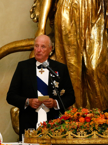Takk for varme velkomstord. Dette er et besøk Dronningen og jeg har sett frem til med forventning. Etter å ha tatt imot Finlands dengang nye presidentpar på statsbesøk i Norge i 2012, er det en glede å være tilbake i Finland som presidentparets gjester. Vi liker oss her.