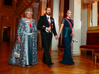 Med dette ønsker Dronningen og jeg dere alle hjertelig velkommen til den tradisjonsrike middagen for stortingsrepresentantene – her i Slottets store spisesal!