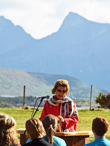 Varmt takk for at dere har tatt så godt imot oss – og takk for fantastisk sang og teater her i dette praktfulle amfiet som naturen selv har skapt her på Vollmoen. Det er virkelig imponerende at så mange samarbeider om sagaspelet – som bringer Steigens mytiske historie videre til nye generasjoner og besøkende og for fremtiden, som vi skjønner nå.