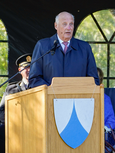 Dronningen og jeg har gode minner fra vårt forrige besøk her i 1993, da vi feiret vårt sølvbryllup med Silver Cruise. Sammen med vår europeiske storfamilie var vi mektig imponert over alt vi opplevde på reisen vår. Vi har derfor gledet oss til å komme tilbake til vakre Sykkylven, og til et levende lokalsamfunn i hjertet av Sunnmøre.