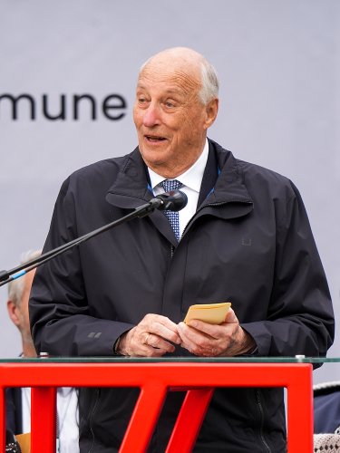 Dronningen og jeg er svært glade for den flotte mottakelsen vi har fått her i Lund kommune, og for alle de fine kulturelle bidragene vi har sett og hørt fra scenen. Takk til alle sammen! En særskilt takk til Moi Musikkorps, som feiret 125-årsjubileum i fjor – og der eldstemann visstnok er like ung som meg selv.