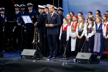 Kongen og Dronningen, og Kronprinsessen og jeg ønsker dere alle hjertelig velkommen hit til Gamlehaugen! Jeg håper dere har funnet dere godt til rette her på plenen på dette unike stedet på Fjøsanger. Det er ordentlig gøy å se så mange folk her i kveld.