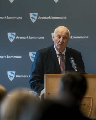 Så hyggelig å være her hos dere! Dronningen og jeg har gledet oss til denne dagen her i Aremark, som vi altså besøker for første gang. Det synes vi var på tide!