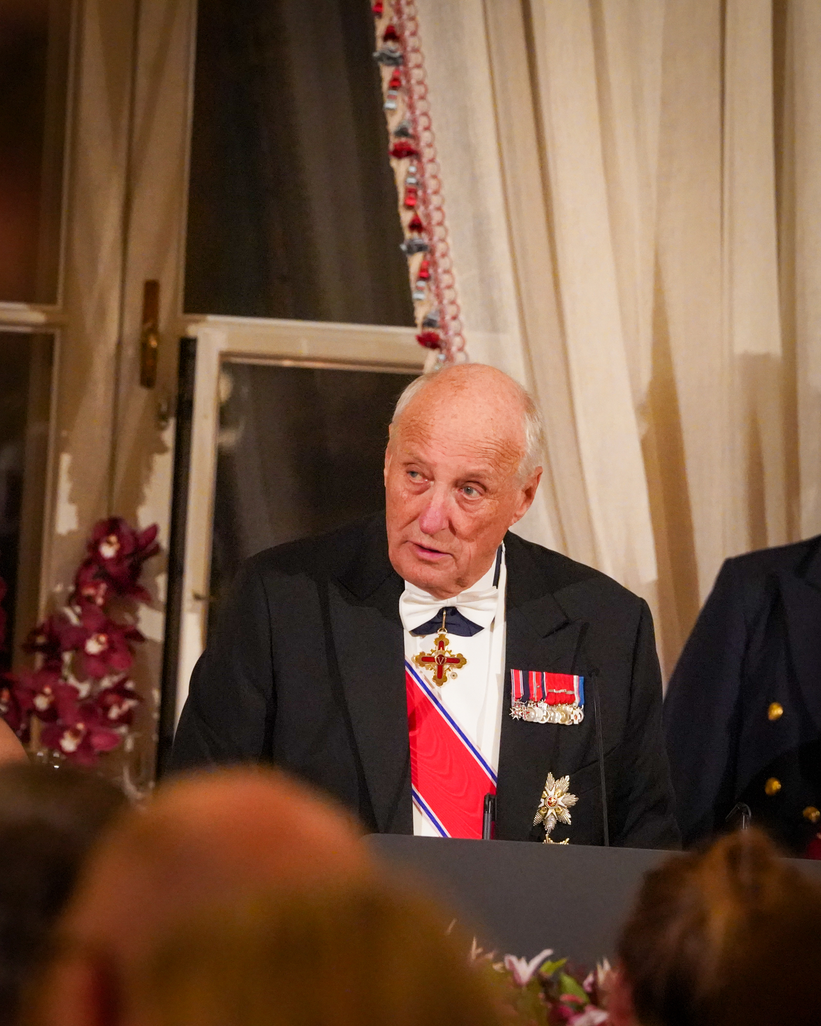 Dronningen og jeg ønsker dere hjertelig velkommen til Slottet, og til denne middagen vi har invitert