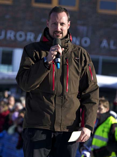 Først og fremst skal jeg hilse så mye fra Kronprinsessen. Hun hadde gledet seg veldig til å komme hit, og er nok lei seg for at hun ikke kunne allikevel – på grunn av en prolaps i nakken. Hun hadde til og med planlagt å øve på hundekjøring for å kunne kjøre selv. Men når det først ble som det ble, er jeg veldig glad for at jeg fikk anlednig til å komme istedet. Jeg har fulgt Finnmarksløpet gjennom flere år. Dessuten er det fint å kjenne litt på kontrasten mellom 40 varmegrader i Malaysia, som vi kom hjem fra for to dager siden – og den kalde, friske lufta her nord.