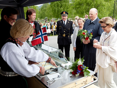 Hjertelig takk for en hyggelig og imponerende velkomst! Dronningen og jeg har lenge gledet oss til årets fylkestur hit til Valdres. Vi takker for denne muligheten til å møte dere og få et innblikk i livsvilkårene i denne delen av landet. I løpet av de neste dagene skal vi besøke seks kommuner, men vi besøker også Valdres som region. Det er sjelden regionidentiteten er så sterk som her. Stolthet over grenda si og kommunen sin er ingen hindring for også å føle stolthet over regionen. Valdres er blitt en merkevare - og jeg vet at godt samarbeid mellom kommunene er en forutsetning for å få dette til.