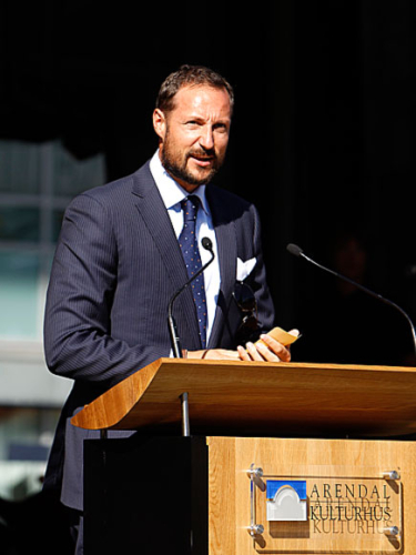 Tusen takk for velkomsten, og får den fine dansen vi fikk se! Kronprinsessen og jeg har hatt en veldig fin dag så langt. Først i Froland – og så med toget hit til Arendal, som vi har gledet oss til å komme tilbake til. Jeg synes vi skal ta en applaus for det.