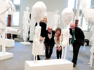 Til nå har vi arrangert konserter og foredrag, vi har hatt utstilling om kongelig hestehold – i tillegg til åpningsutstillingen, som var en bred mønstring av norsk samtidsgrafikk. I dag går vi altså et steg videre – og har åpnet rommet for Kjell Erik Killi-Olsens skulpturer. Mange av dem har vært ute på en farefull ferd i lastebil fra Trondhjem – og er nå takk og lov trygt plassert her i dette unike bygget!